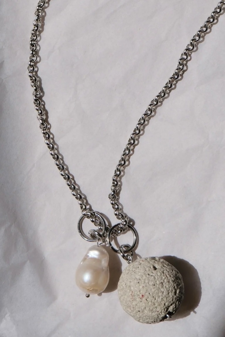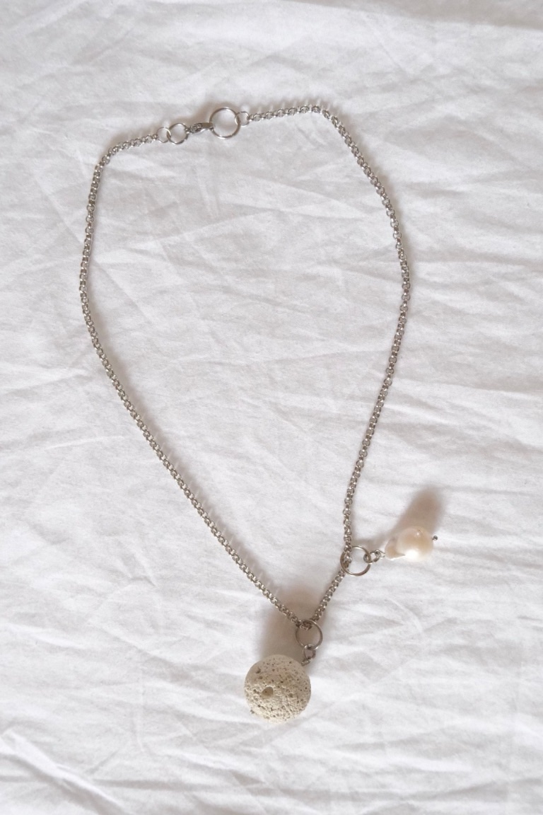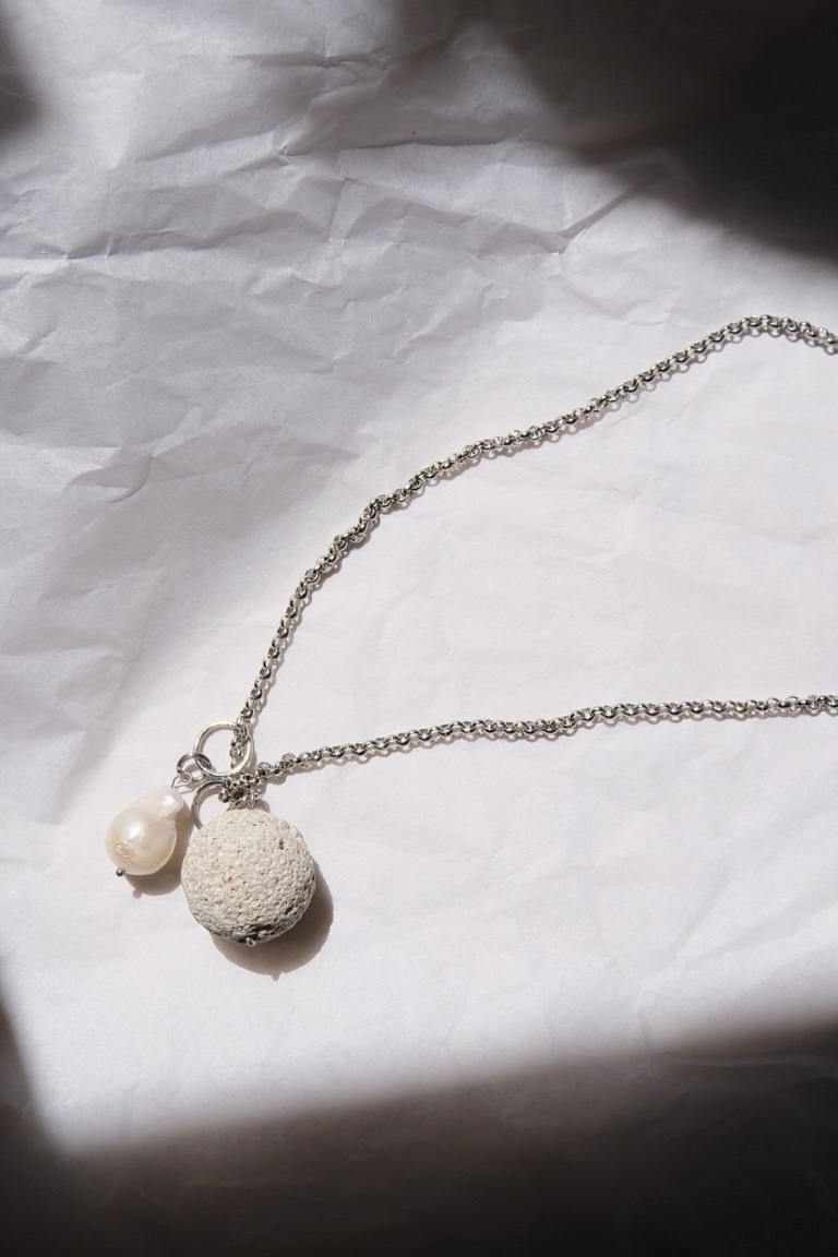 Material: Natural lava stone, freshwater pearl, stainless steel chain