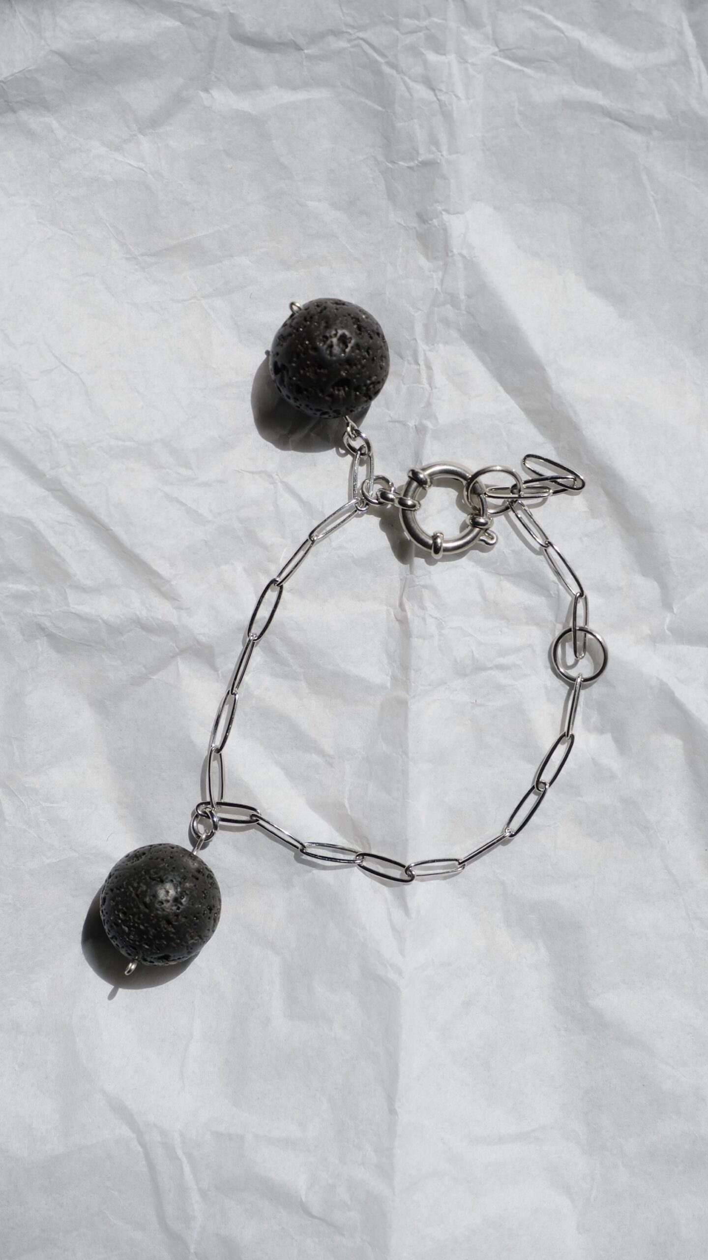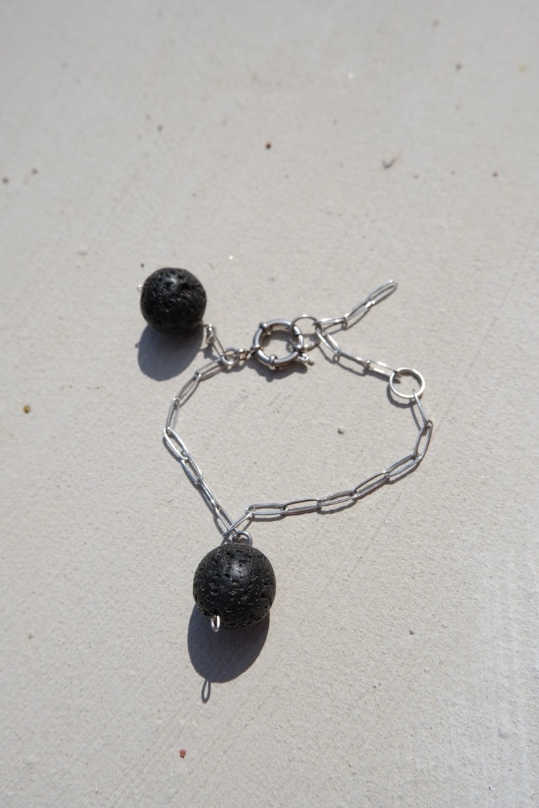 Discover the charm of contrasts with this contemporary bracelet. The bold, porous texture of natural lava stone meets the clean lines of a silver chain, creating a striking balance between raw nature and modern design. Lightweight yet distinctive, it’s a playful accessory that invites creativity in styling. Ideal for those who enjoy transforming their jewelry into a personal statement with every wear.