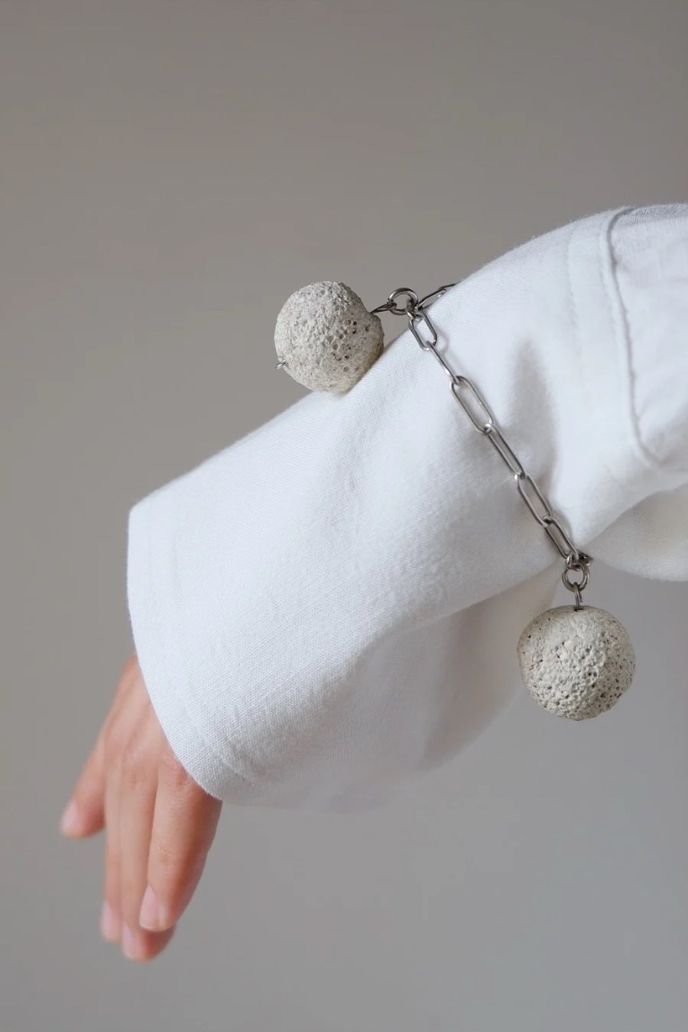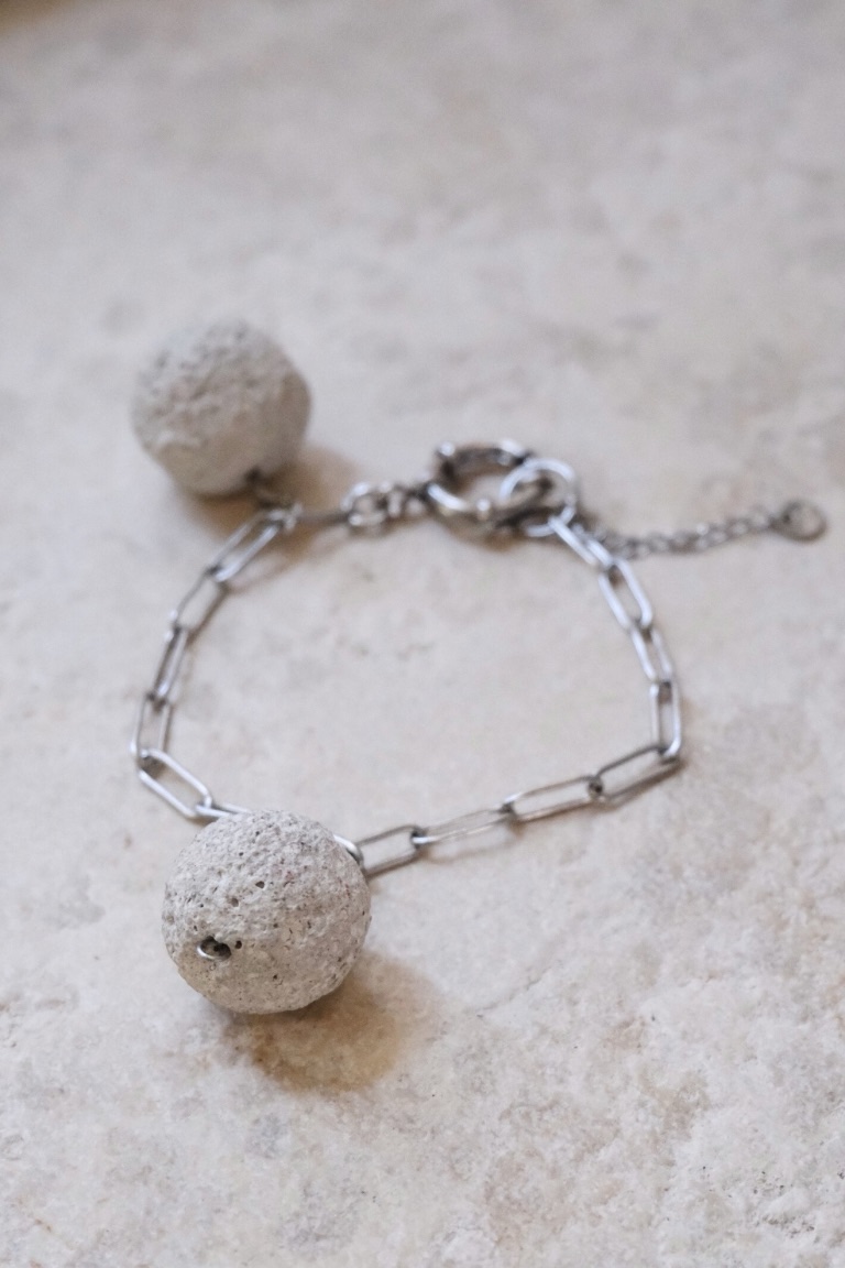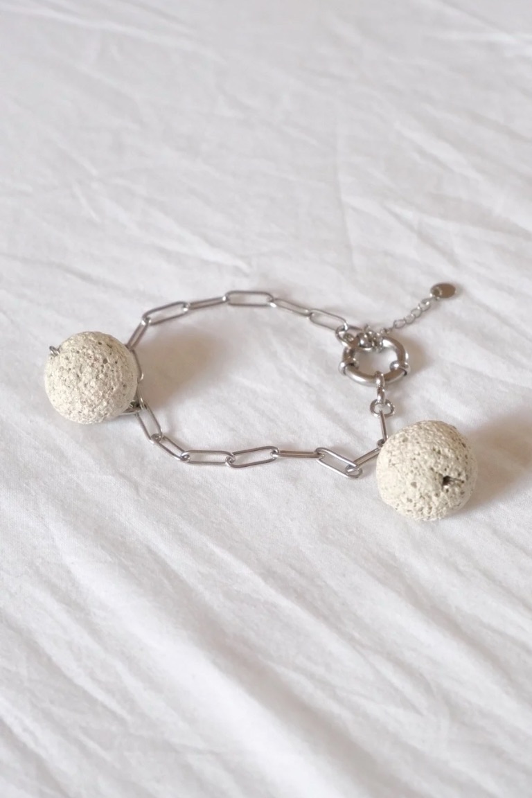 Discover the charm of contrasts with this contemporary bracelet. The bold, porous texture of natural lava stone meets the clean lines of a silver chain, creating a striking balance between raw nature and modern design. Lightweight yet distinctive, itβs a playful accessory that invites creativity in styling. Ideal for those who enjoy transforming their jewelry into a personal statement with every wear.